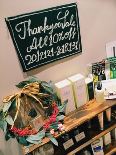 2017.12.1-2018.1.31までお店に置いてある全商品を10%Offさせて頂いています。