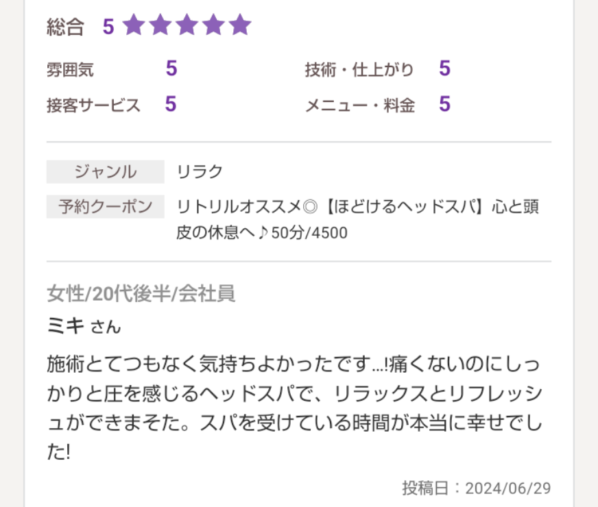 先日嬉しい出来事が!!ホットペッパーの口コミをいただきました。