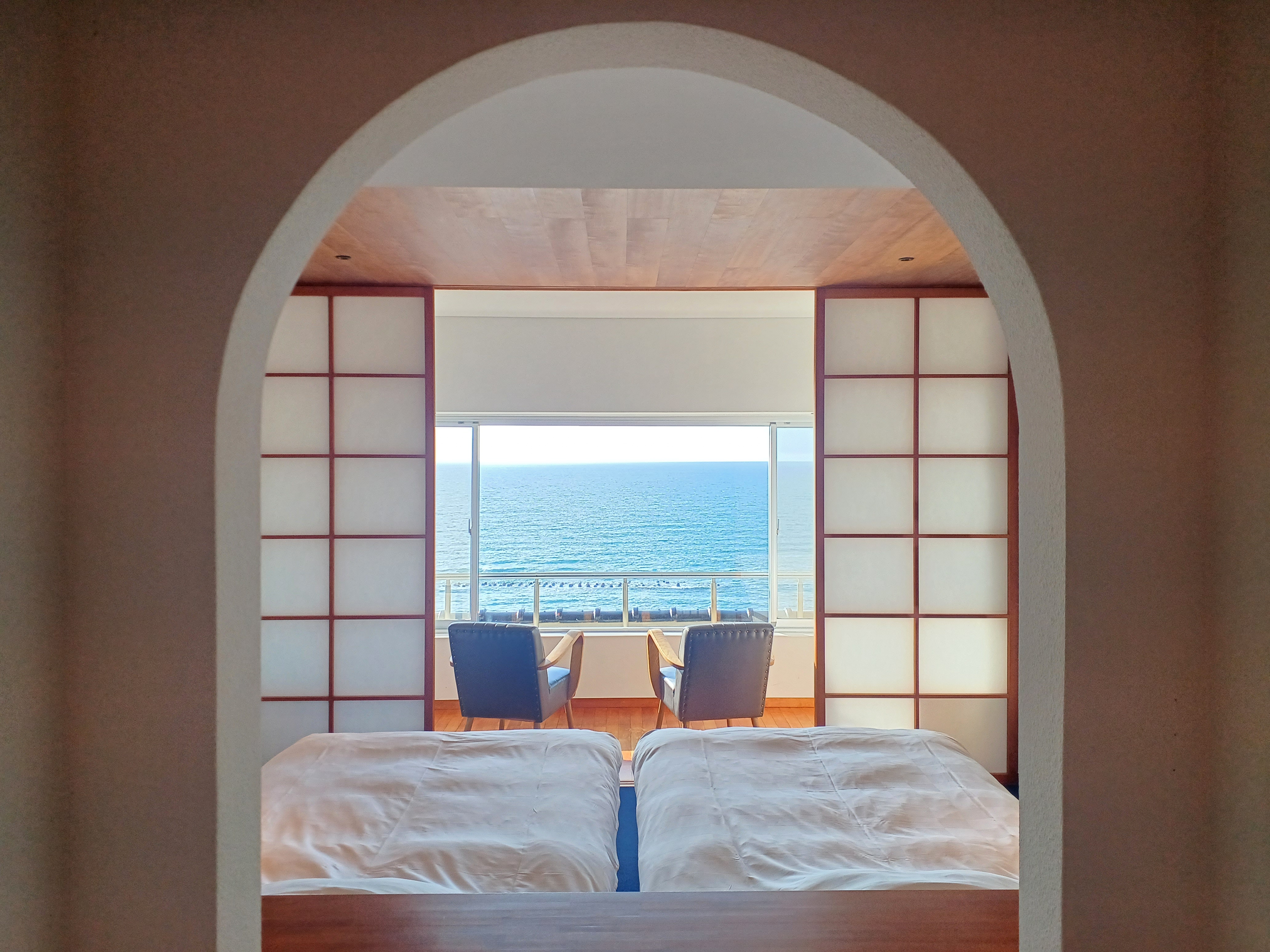 初日は日本海が一望できる宿